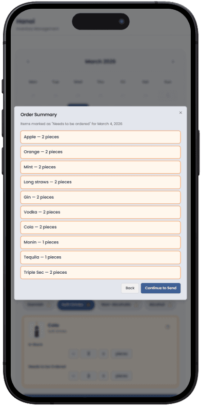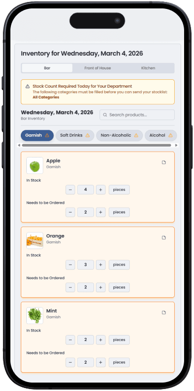 Track your ingredients in real time, reduce waste, and always know what needs ordering. Keep your kitchen aligned with actual usage so you avoid shortages during busy service and prevent over-ordering during slower periods.