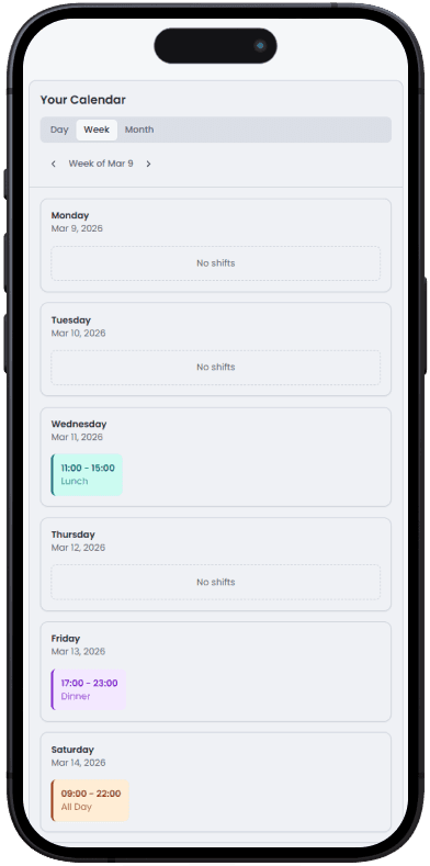 Instantly notify employees about schedule updates and let them request swaps with approval. No more endless group chats or last-minute chaos.