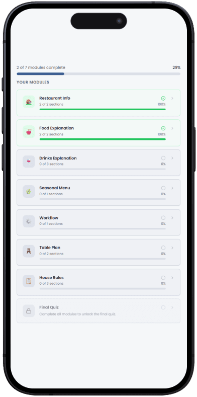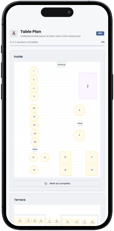 Bring new team members up to speed quickly. Share training materials, checklists, and essential information so every employee knows exactly how your restaurant operates from day one.