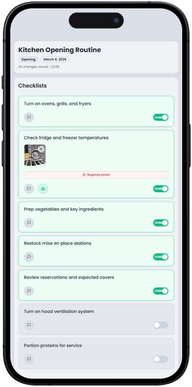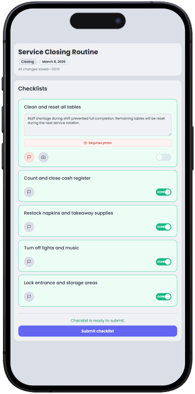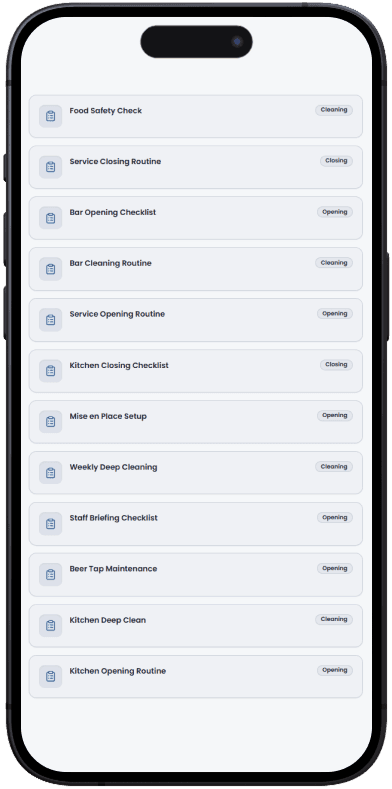 Staff check off tasks as they go, and managers see progress in real time. No more paper lists. No more “I thought someone else did it.”